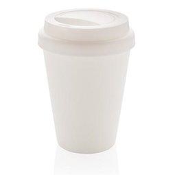 Ekologiczny kubek podróżny 300 ml, lekki, trwały i wielokrotnego użytku, wykonany z materiału PP w 100% nadającego się do recyklingu, podwójne ścianki, zakręcane wieczko, odporny na temperaturę do 100 stopni Celsjusza, wyłącznie mycie ręczne