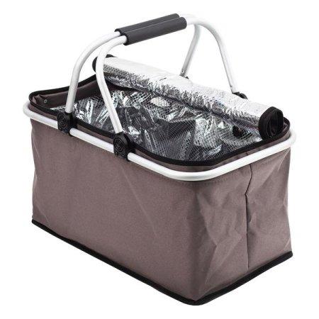 Wykonany z poliestru izotermiczny kosz piknikowy o pojemności 32 litrów. Zapewnia bardzo dobrą izolację termiczną dzięki starannemu wyłożeniu wnętrza grubą warstwą izotermiczną z folii aluminiowej oraz pianki EPE. Aluminiowa rama, uchwyt z pianki EVA. Maksymalne obciążenie 15 kg