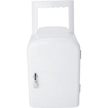Mini lodówka z miejscem na 6 puszek, napięcie: DC 12V AC 100-240V, chłodzenie o ok. -20 do -25 oC poniżej temperatury otoczenia (najniższa możliwa temperatura to -2 oC), a ogrzewanie do 50 oC, produkt nie jest przeznaczony do używania w UK lub Irlandii