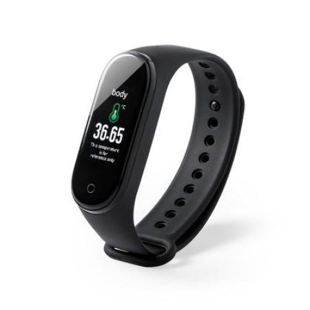 Monitor aktywności, bezprzewodowy zegarek wielofunkcyjny BT 4.0, termometr z funkcją automatycznego mierzenia temperatury ciała co 5 min. i synchronizacji z aplikacją do rejestrowania wartości (temperatura ciała oraz tętno), wyświetlacz TFT 0.96″, bateria 90 mAh 3.7V, zasięg do 10 m, kompatybilny z iOS 9.0 (lub nowsze) lub Android 5.0 (lub nowsze), ładowany przez USB, kabel w komplecie, pozostałe funkcje: alarm, krokomierz, licznik spalonych kalorii, wyzwalacz migawki, funkcja odbierania połączeń, powiadomienia z aplikacji, wibracje, zabezpieczenie przed zgubieniem, monitor snu, pulsometr, pulsoksymetr, kalendarz