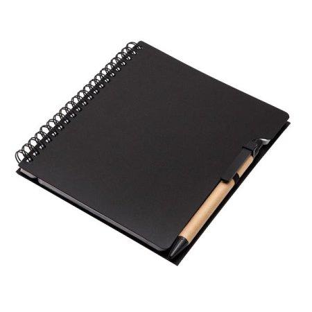 70 kartkowy notes B6 w plastikowej oprawie, z długopisem (wym: 140x10x10 mm). Kartki w linie o gramaturze 70 g/m2, z perforacją ułatwiającą ich wyrywanie.