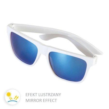 Okulary przeciwsłoneczne z akrylowymi soczewkami w kolorze niebieskim. Oprawa poliwęglanowa. Filtr ochronny UV 400.