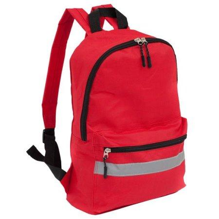 Plecak dziecięco-młodzieżowy wykonany z poliestru 600D z taśmą zwiększającą widoczność o szerokości 2,5 cm. Nie należy utożsamiać tego produktu z produktami ochrony indywidualnej w rozumieniu Dyrektywy o Środkach Ochrony indywidualnej 89/686/EEC. Pojemność 18 litrów.