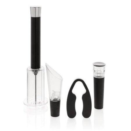 Zestaw akcesoriów do wina 4 el.: ciśnieniowy korkociąg, nóż do folii, korek z pompką próżniową, nalewak z aeratorem, w eleganckiej tubie upominkowej
