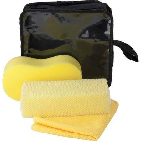 Zestaw do mycia samochodu w pokrowcu, w komplecie: gąbka, gąbka z siateczką i szmatka z mikrofibry (35 x 35 cm)
