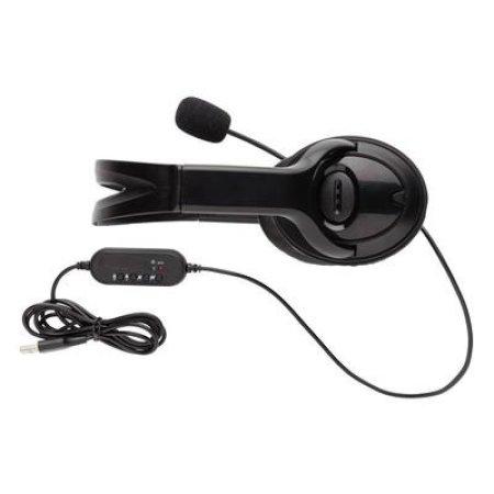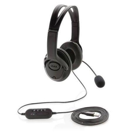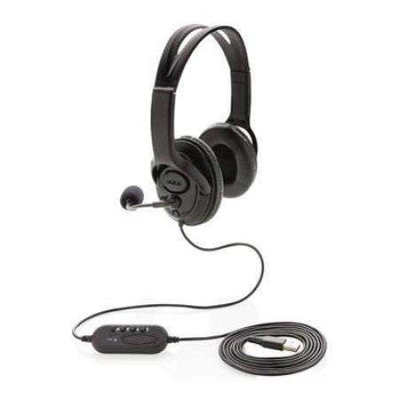 Zestaw słuchawkowy, wykonany z ABS, lekki i wygodny, wbudowany mikrofon, wbudowany panel do zmiany głośności / wyciszenia, nadają się idealnie do rozmów video, kompatybilne z komputerami PC oraz Mac®, zintegrowany kabel z końcówką USB A o długości 2 m